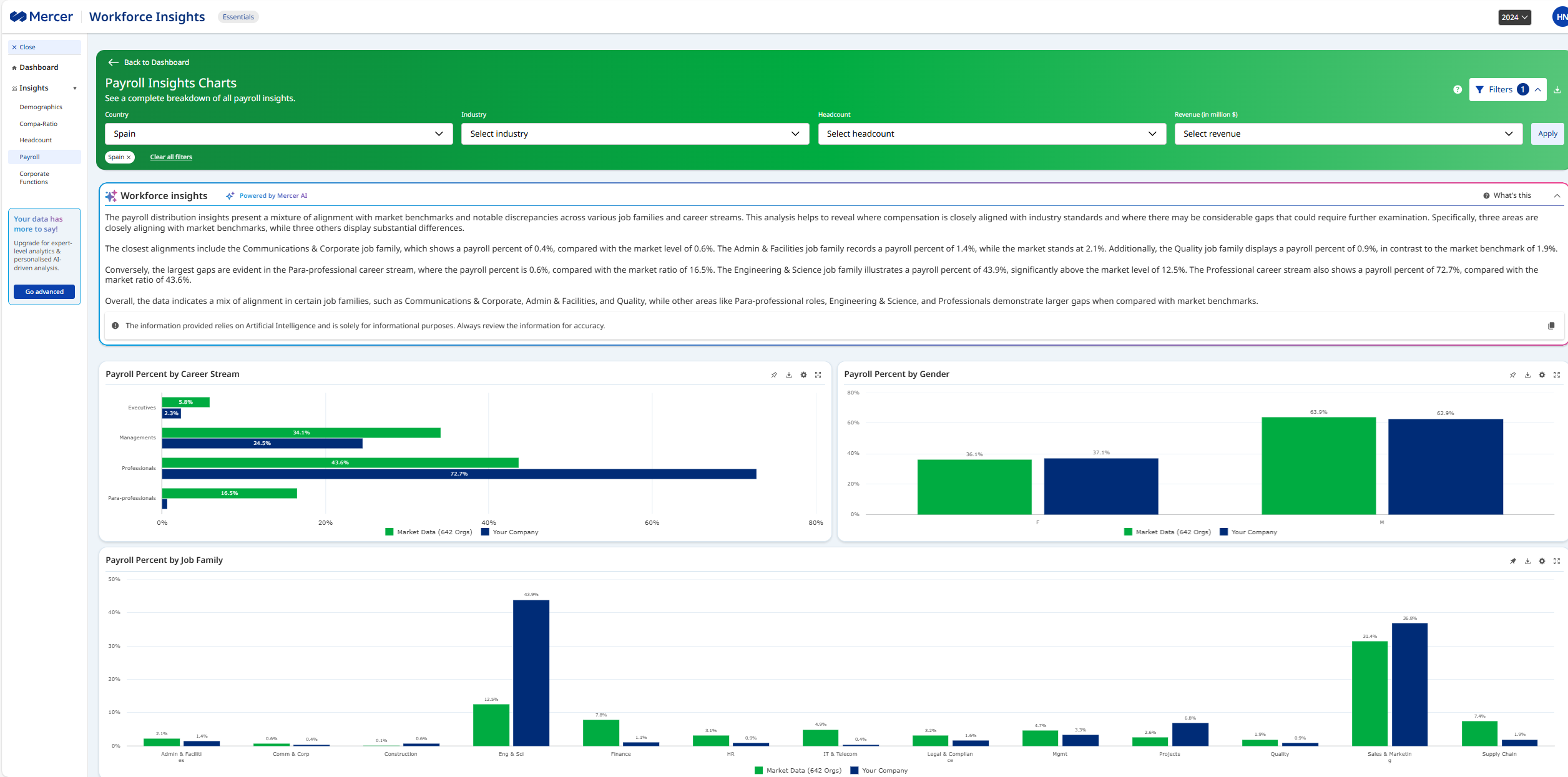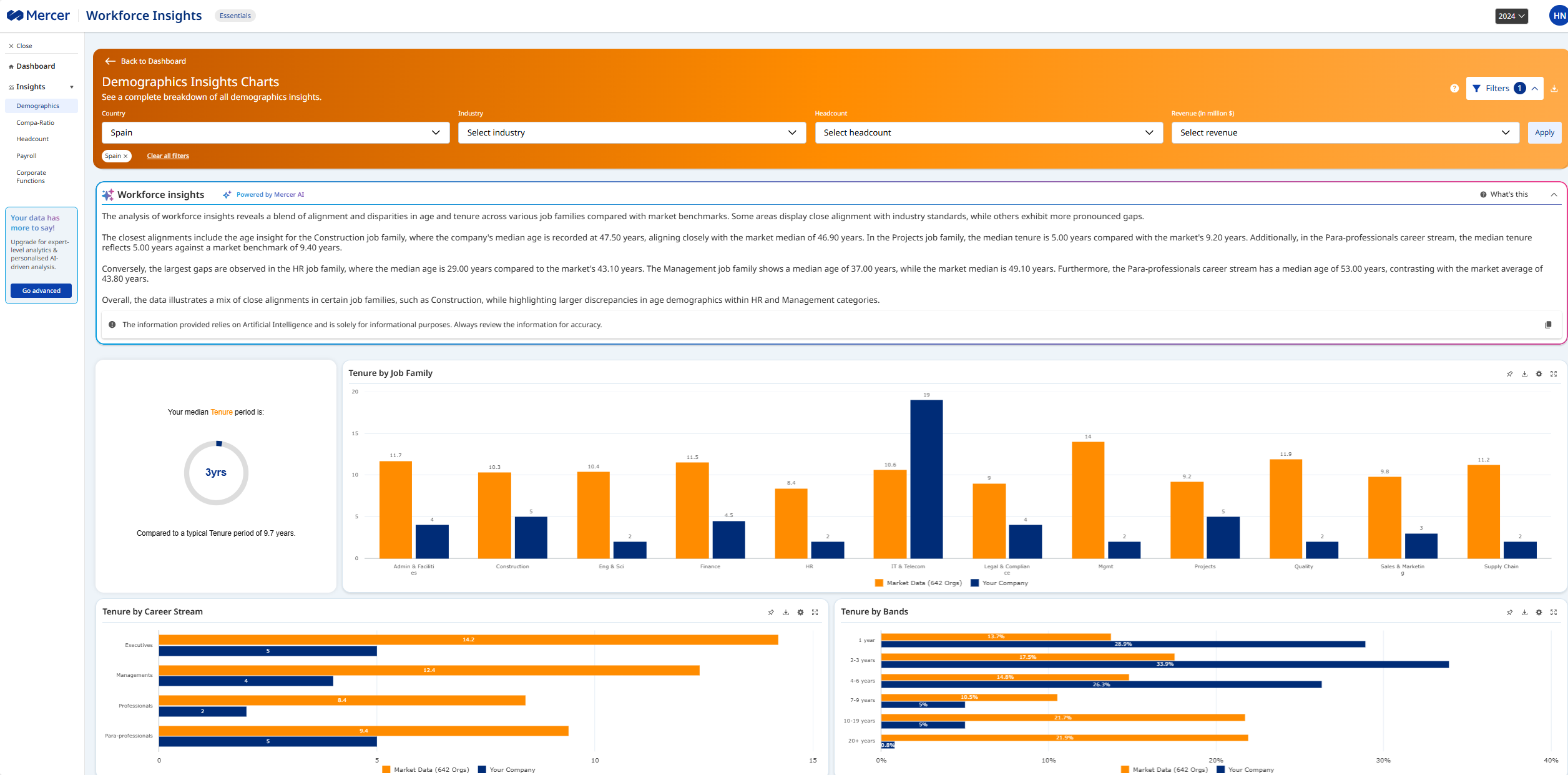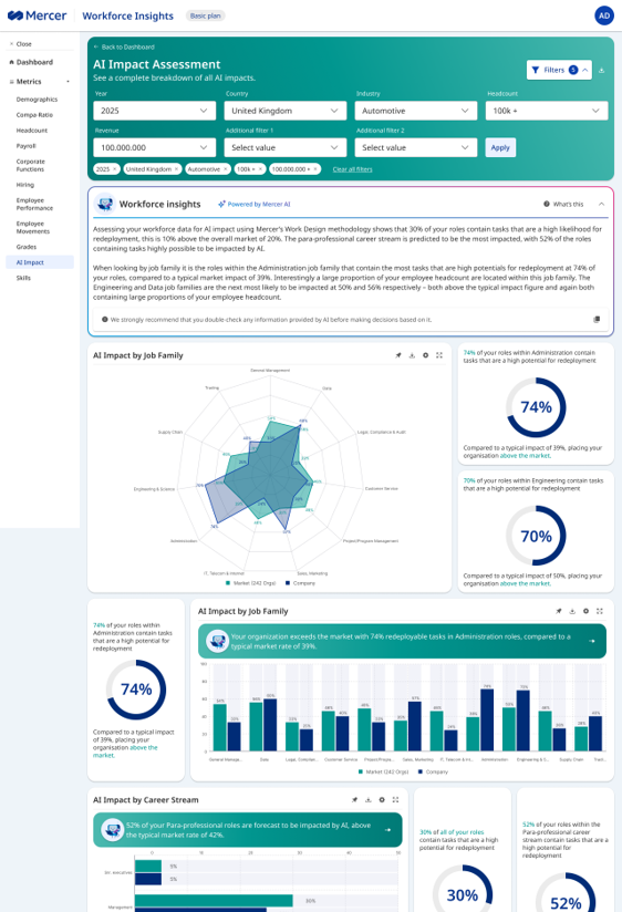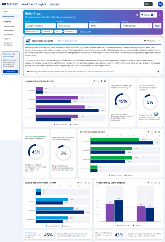 美世劳动力洞察是一个由AI驱动的平台,涵盖100多个市场的基准数据,汇聚近20000家企业的实践信息。该平台帮助企业全方位透视人才布局和劳动力动态,精准对标行业基准,即时捕捉新兴趋势。