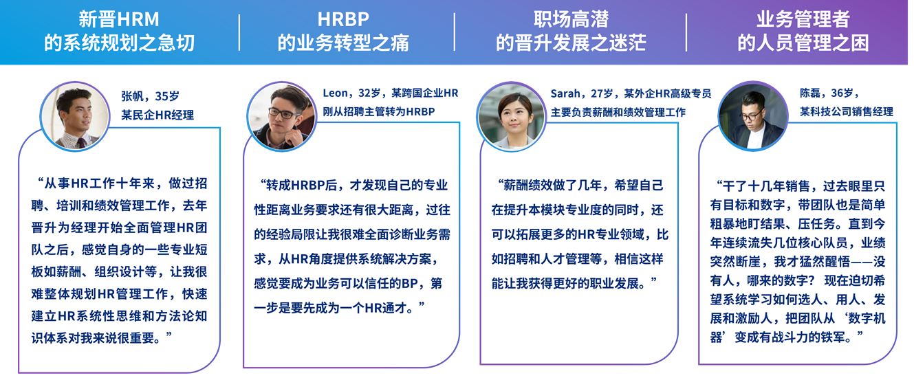 涵盖业务伙伴,薪酬与绩效,人才招募,人才管理,组织发展与变革,员工关系 6大模块,共28门课程。