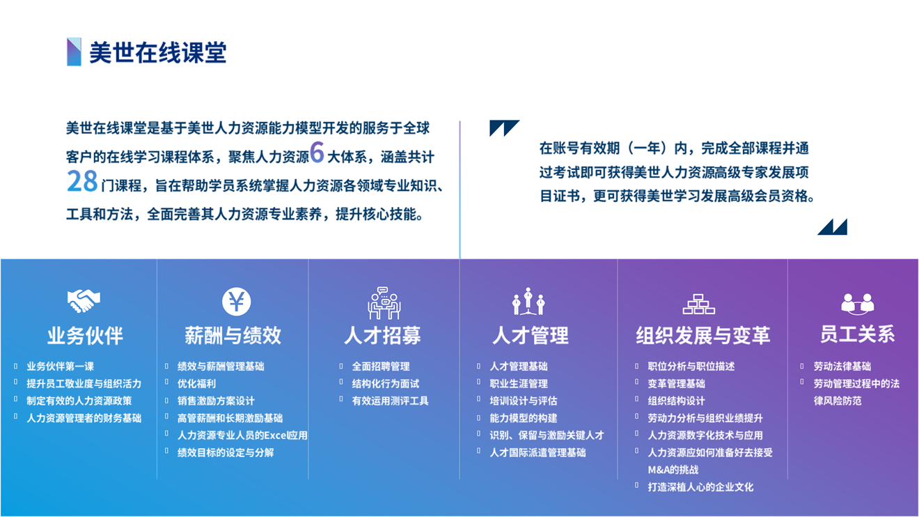 *美世线上学习产品账号特指:美世全球化管理学堂/美世组织效能大咖学堂2.0 /美世在线课堂标准学习包/美世线上实战研修营(除Pro版本外)