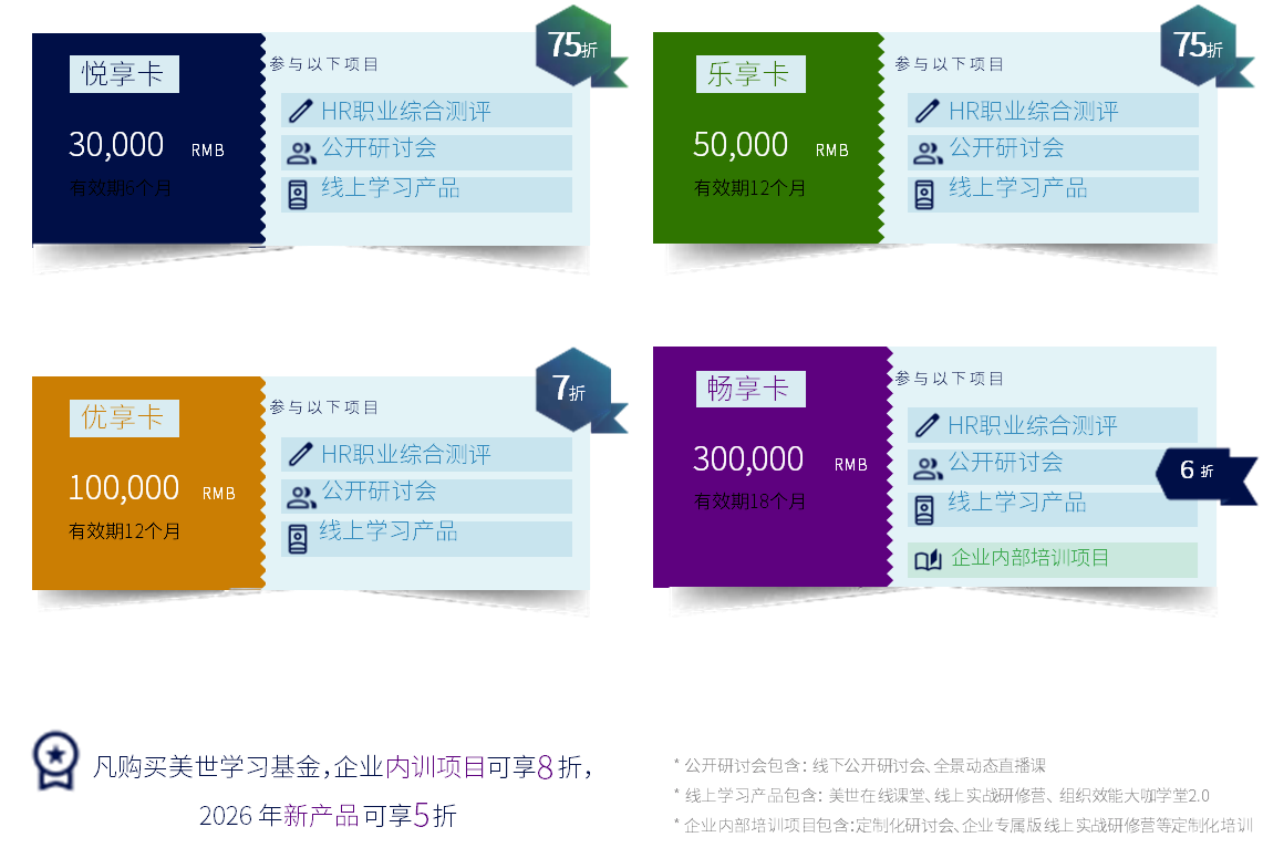 *【特别说明】美世人力资源高级专家发展项目、线上实战研修营Pro版不享受含以上所有学习基金在内的任何优惠。